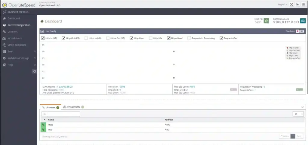 Once completed, log in to the OpenLiteSpeed dashboard using the credentials you just set at http://YourIPAddress:7080.